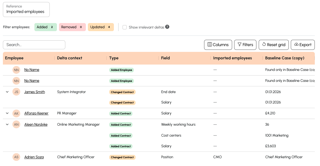- Changes are grouped by employee offering a comprehensive overview of all changes